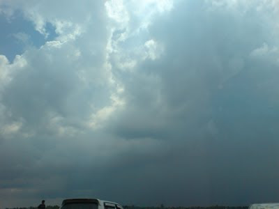 It was cloudy when we drove away. I thought it would rain but it didn't. Lol. I managed to take a snapshot of the sky from the inside of the moving car.